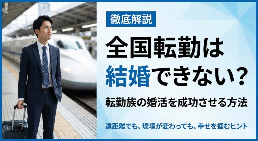「全国転勤があるから、結婚は無理かもしれない…」 「転勤が原因で、大切な人との関係が終わってしまった…」 全国転勤という働き方は、キャリアの可能性を広げる一方で、恋愛や結婚においては大きな壁となることがあります。周りが次々と結婚していく中で... 結婚相談所の基礎知識