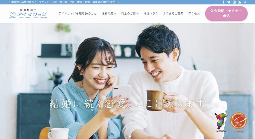 木更津市太田のアイマリッジ内に店舗を構え、全国規模・地域密着の両軸で婚活を支援する相談所。創業35年の経験とAIマッチング、AI紹介・推薦紹介・検索システムなど多彩な出会い方、オンライン・対面サポートを提供します。