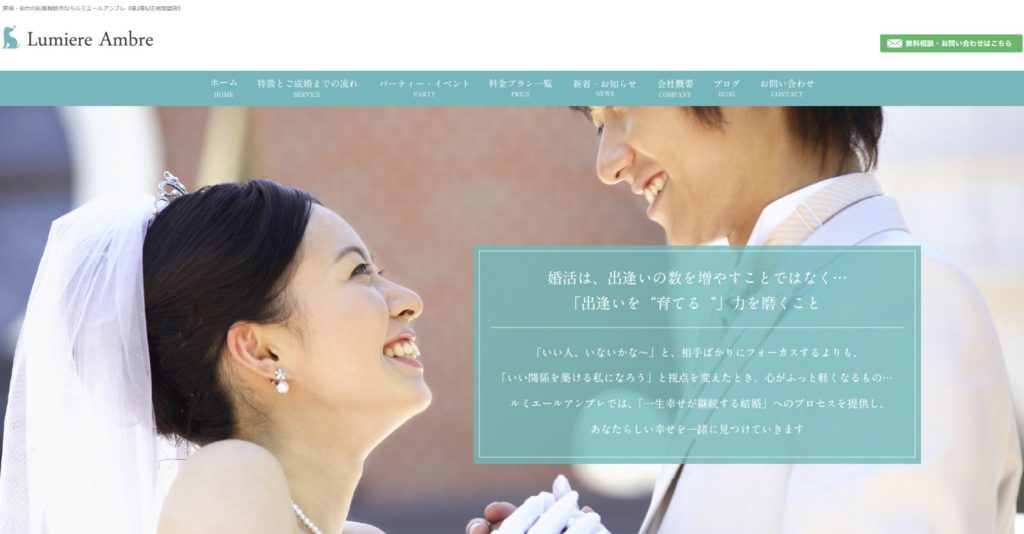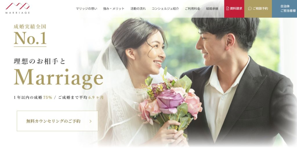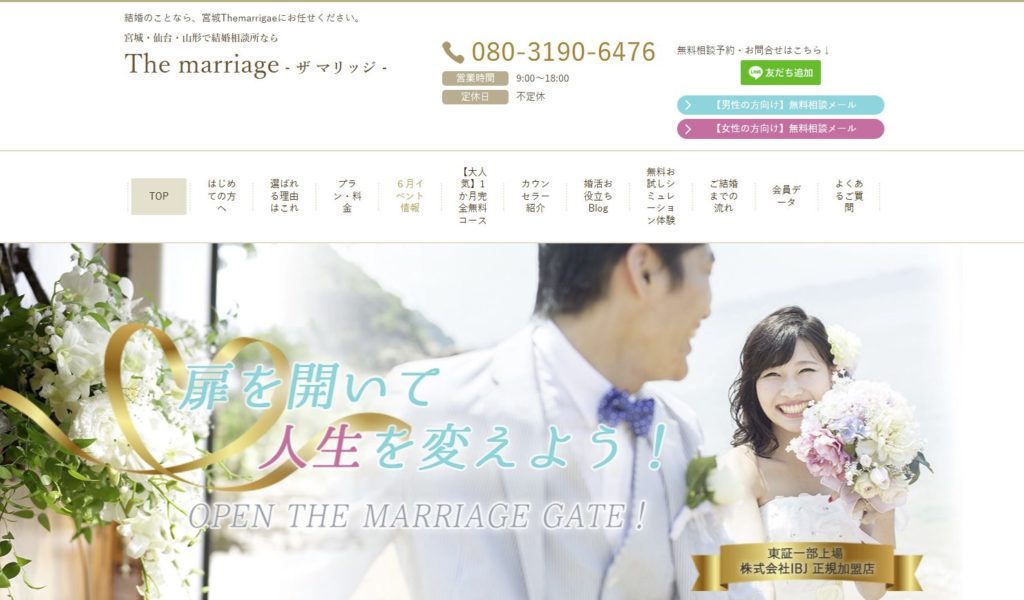 宮城県仙台市中心に拠点を構えるマリッジは、IBJ加盟・1年成婚にこだわる成婚主義を掲げ、専任コンシェルジュによる徹底サポート。オンライン・出張面談対応で、宮城県在住者も気軽に利用できる体制が整っています。