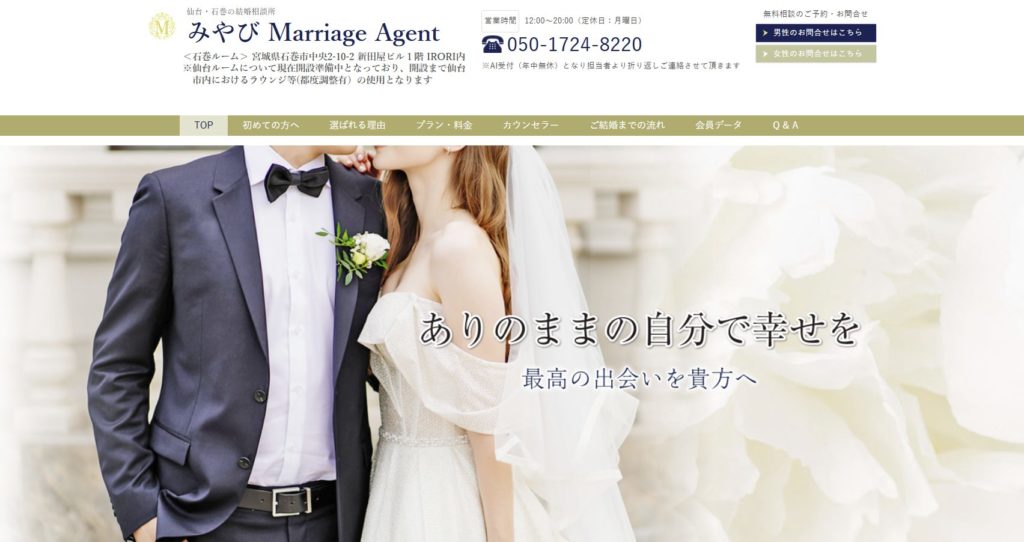 宮城県石巻市を拠点とする「みやびMarriage Agent」は、地元密着で仙台・石巻エリアをカバーし、IBJ連盟加盟による全国ネットワークと現地ならではの手厚いサポートを両立。地域特性に応じた丁寧な婚活支援を提供します。