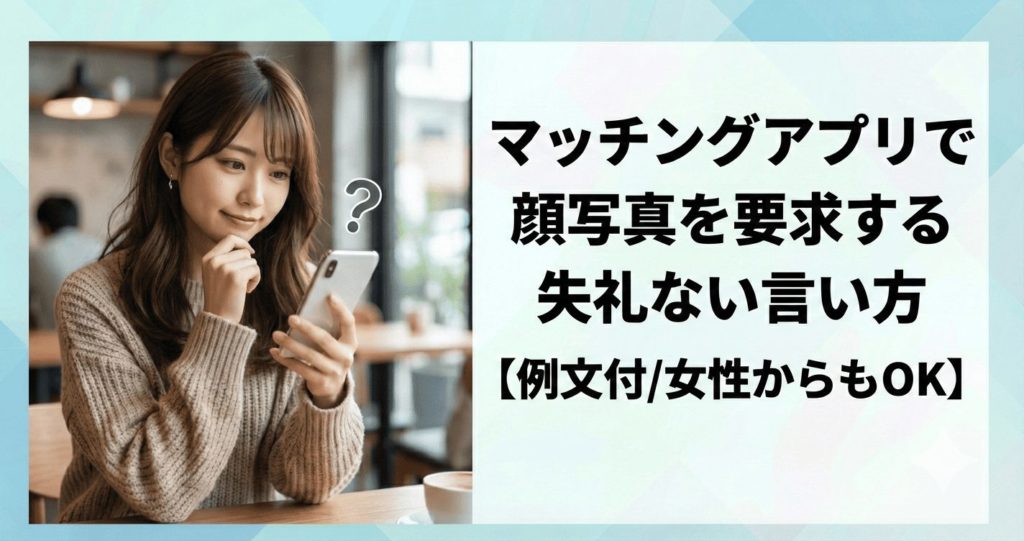マッチングアプリで気になる相手とマッチングしたものの、プロフィールに顔写真がなかったり、マスクやスタンプで隠されていたりして、どんな人なのかわからず不安に感じていませんか? 「会う前に顔を知っておきたいけど、どうやって聞けばいいんだろう…... -