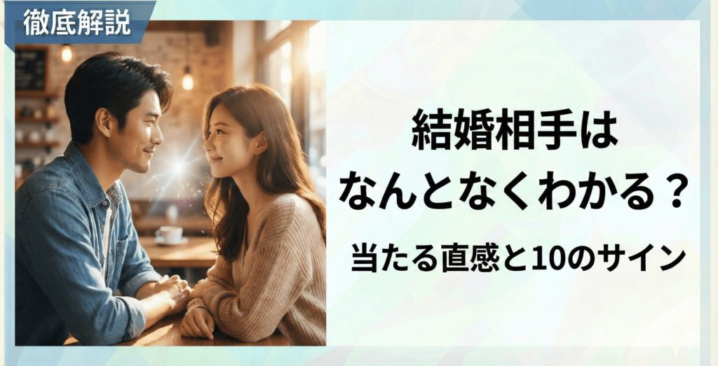 「この人と結婚するかもしれない…」 今、あなたの隣にいるパートナーや、気になっている相手に対して、言葉ではうまく説明できないけれど、そんな不思議な感覚を抱いていませんか? その「なんとなくこの人と結婚するな」と思う瞬間は、ただの思い過ごしな...