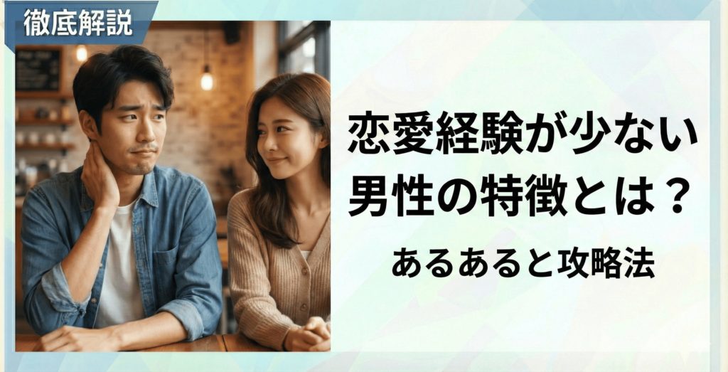 「恋愛経験が少ない、恋愛経験なしの男性の特徴って?」「どう接すれば良いの?」そんな疑問を抱えていませんか? この記事では、恋愛経験が少ない男性が持つ、自己評価の低さや自信過剰といった性格的な「あるある」から、慎重すぎるアプローチ、視線をそ... -