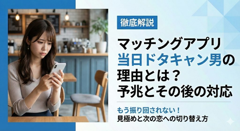 マッチングアプリで楽しみにしていたデートを、男性から当日にドタキャンされた…。ショックと怒り、そして「どうして?」という疑問で、心がモヤモヤしていませんか。 この記事では、そんなあなたの悩みを解決するために、**当日ドタキャンした男性の心理... -