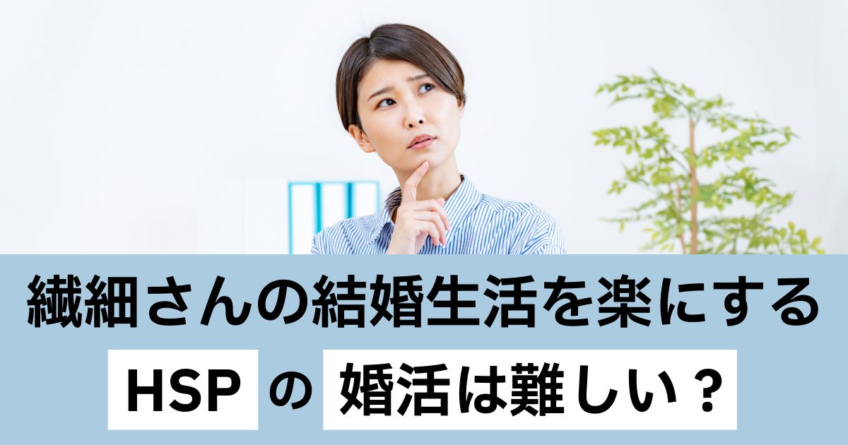 繊細な感受性を持つHSP(Highly Sensitive Person)の人は、婚活は難しいと感じるかもしれません。「結婚は諦めて、ひとりでいた方がいいのかも」と悩む繊細さんもいるのではないでしょうか。