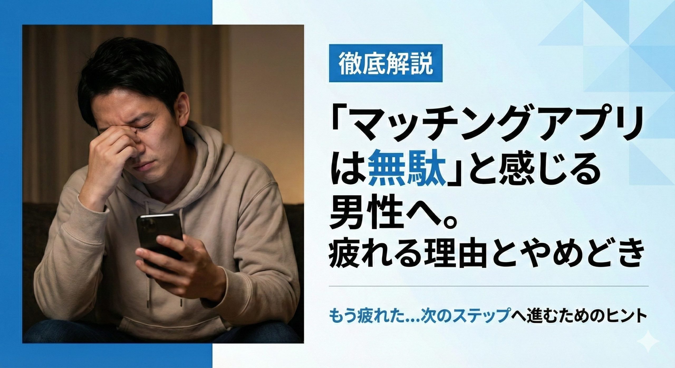 「マッチングアプリは無駄」と感じる男性へ。疲れる理由とやめどき